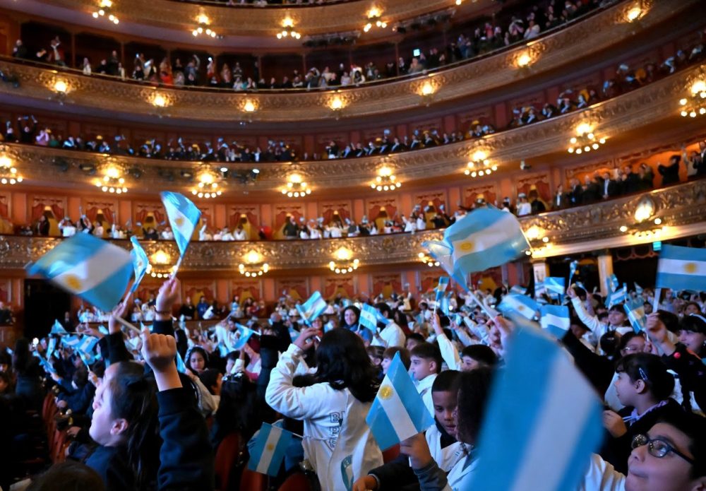 | En el imponente teatro Colón, el Jefe de Gobierno, Jorge Macri, les tomó la promesa de lealtad a la bandera a más de mil alumnos de cuarto grado de escuelas estatales y privadas de la Ciudad.Participaron del acto padres, maestros y directivos de escuelas estatales, colegios privados y escuelas especiales. Junto a la cantante Silvana Gómez, la Mega Orquesta de la Ciudad, una agrupación integrada por chicos que estudian música, interpretó canciones patrias. Además, en la Plaza del Vaticano se proyectaron contenidos educativos vinculados al Día de la Bandera. “Festejo que estén reunidos acá los dos sistemas educativos, el público y el privado, porque la escuela es una sola. Eso es algo que cambiamos desde que asumimos. Es muy lindo que estén acá todos los chicos juntos reunidos”, afirmó Jorge Macri ante 2.000 invitados. Estuvo acompañado por la ministra de Educación, Mercedes Miguel; integrantes del Gabinete porteño, autoridades escolares y docentes.Cada 20 de junio se celebra el Día de la Bandera para honrar a su creador, el general Manuel Belgrano, figura heroica de la patria que falleció el 20 de junio de 1820. “La bandera nos une y nos identifica. A partir de hoy, la van a llevar siempre en el corazón. El futuro empieza en ustedes”, dijo Jorge Macri. Y agregó: “Gracias a nuestros docentes por darles a los chicos la posibilidad de ser personas libres que puedan elegir en el futuro”.»La promesa a la bandera es mucho más que un acto escolar: es una oportunidad para que los chicos expresen su compromiso con los valores que nos unen como sociedad. Vivirlo en el Teatro Colón, junto a las familias y docentes, es un orgullo que reafirma el valor de la educación y el rol de la escuela en la formación ciudadana”, destacó Mercedes Miguel, ministra de Educación de la Ciudad. |