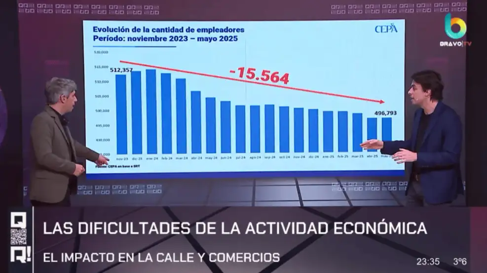 Evolución de la cantidad de empleadores | Bravo TV. Captura de TV.