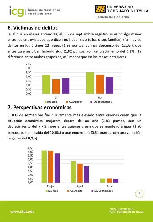 El Índice de Confianza en el Gobierno (ICG) elaborado por la Universidad Torcuato Di Tella se ubicó en 1,94 puntos en septiembre, lo que implicó una caída mensual del 8,2% y del 10% interanual, alcanzando el nivel más bajo desde que Javier Milei asumió la presidencia.