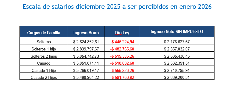 | Escala de salarios diciembre 2025 a ser percibidos en enero 2026 | |||||