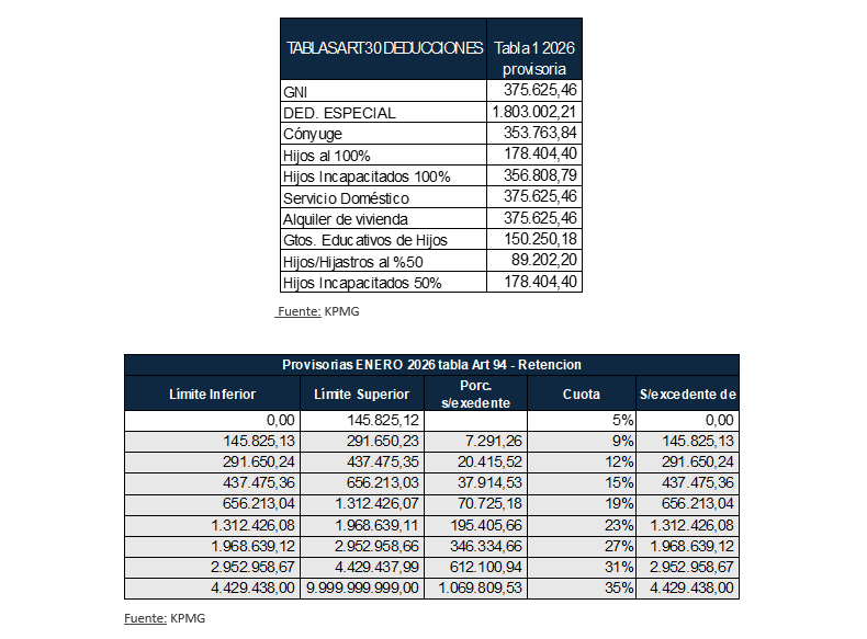 Buenos Aires, 5 de enero de 2026 / KPMG (Escribe Ariel Bassanetti, gerente senior de Payroll en Argentina y Latam, KPMG Argentina). Para el ejercicio fiscal 2025 ya se conocen las escalas anuales para el pago del Impuesto a las Ganancias que se deberá realizar en abril del próximo año. Vale aclarar que las escalas aún no pueden determinarse porque su actualización depende del índice de precios al consumidor (IPC) correspondiente al período devengado de diciembre. Y según el cronograma del INDEC, ese índice será publicado el martes 13 de enero de 2026. Entonces, hasta tanto se publique el IPC y ARCA defina oficialmente las nuevas tablas, para todas aquellas remuneraciones devengadas en diciembre de 2025 y percibidas en los primeros días de enero de 2026, deberán aplicarse las escalas vigentes al cierre del período fiscal correspondiente a 2025. Bajo este criterio transitorio, se detallan a continuación los pisos tributarios estimados del impuesto, calculados con las tablas finales 2025, a modo meramente informativo