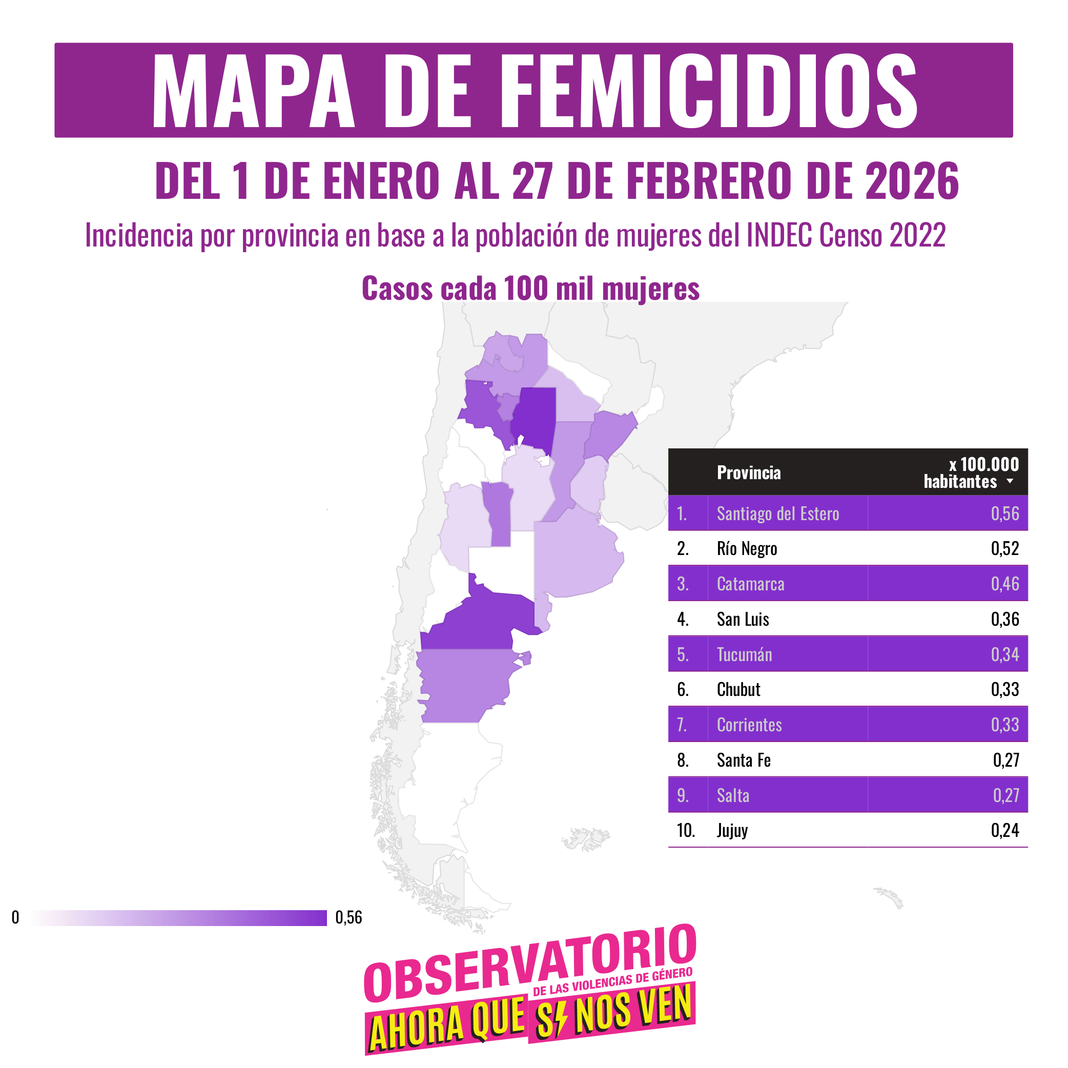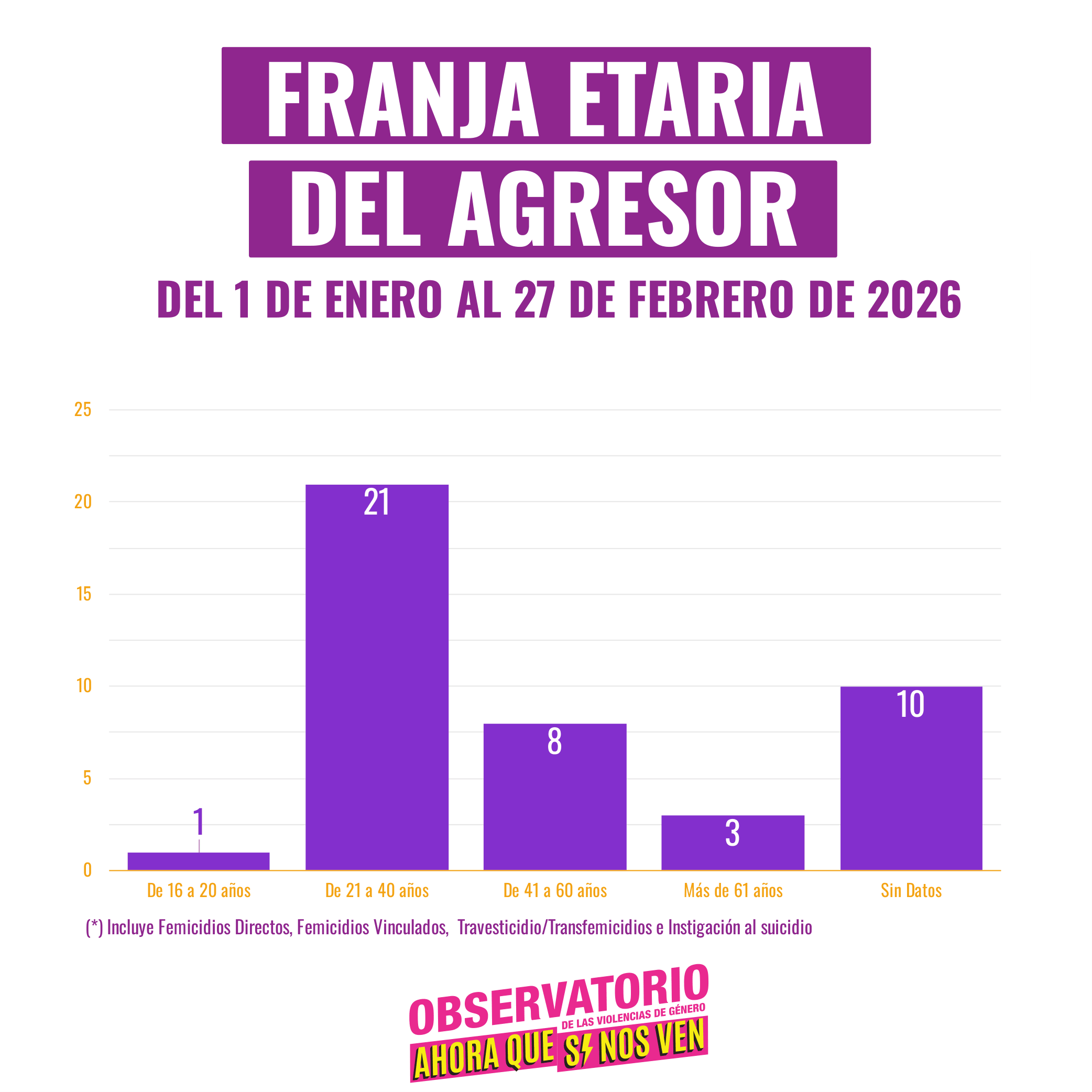 * 72 intentos de femicidio (1 cada 21 horas)